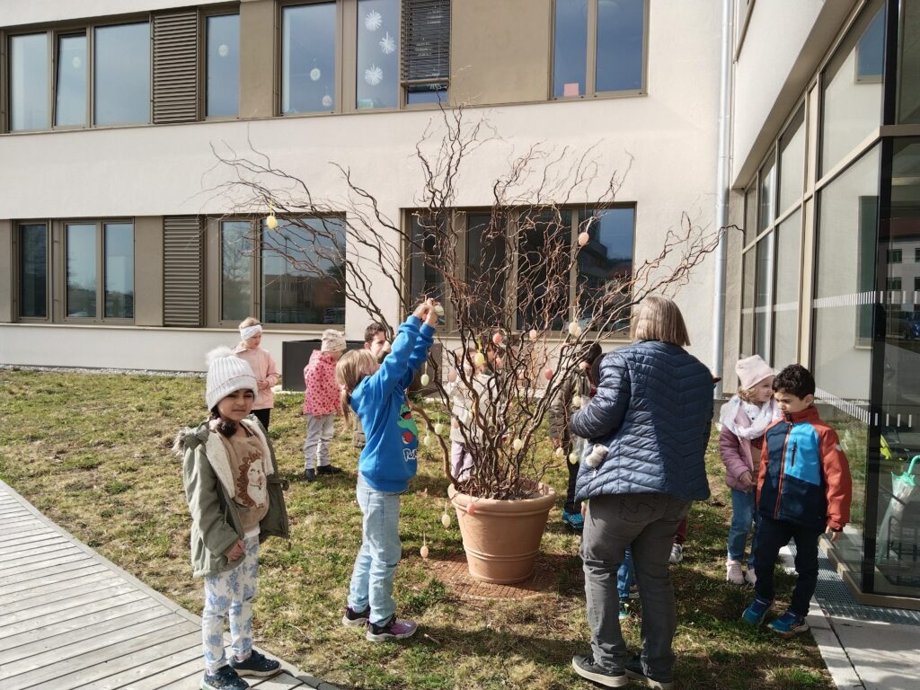 Mit viel Freude und bunten Anhängern haben unsere Vorschüler heute den Osterstrauch geschmückt. 🌸🐣 Gemeinsam wurden Eier, aufgehängt. Dabei wuchs die Vorfreude auf Ostern bei allen Kindern spürbar. Jetzt strahlt unser Osterstrauch im Eingangsbereich und erinnert uns jeden Tag daran, dass das Osterfest bald vor der Tür steht. 🌷🥚